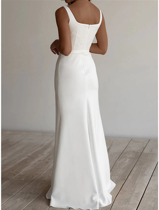Engagement Casual Wedding Dresses Sheath / Column Scoop Neck Sleeveless Floor Length Stretch Fabric Bridal Suits Bridal Gowns