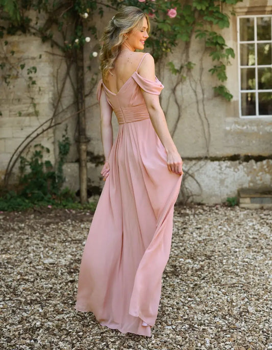 an off-the-shoulder a-line