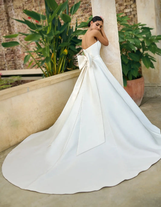 a simple wedding dress with bow