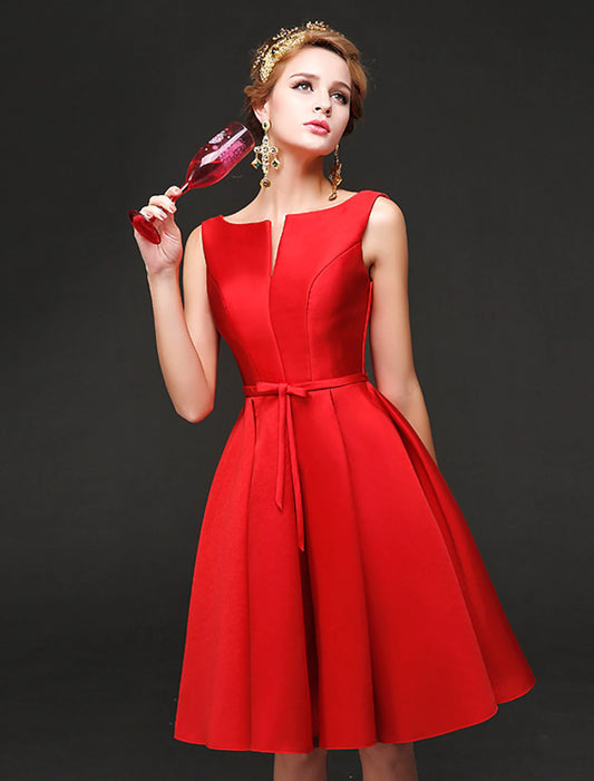A-Line Cocktail Dresses Minimalist Dress Homecoming Graduation Short / Mini Sleeveless Jewel Neck Satin with Sash / Ribbon Bow(s)