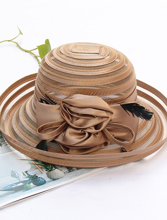 AerbaDress Hats Headwear Organza Bucket Hat Fedora Hat Straw Hat Casual Holiday Cocktail Royal Astcot Retro Elegant With Feather Flower Headpiece Headwear