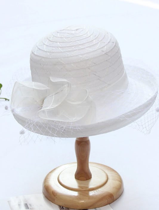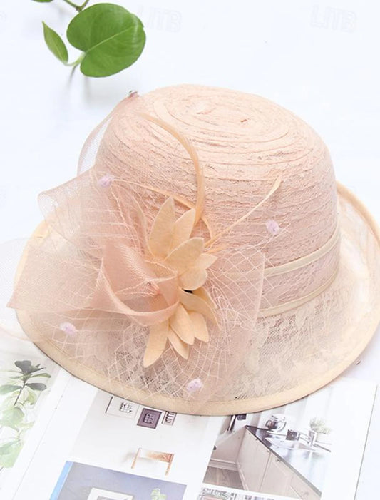 AerbaDress Fascinators Kentucky Derby Hat Headwear Organza Bowler / Cloche Hat Bucket Hat Straw Hat Casual Holiday Elegant Vintage With Feather Bowknot Headpiece Headwear