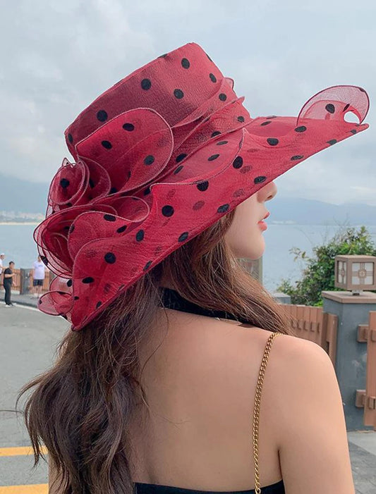AerbaDress Hats Tulle Sun Hat Holiday Tea Party Kentucky Derby Melbourne Cup Cocktail Cute Flower Style With MiniSpot Appliques Headpiece Headwear