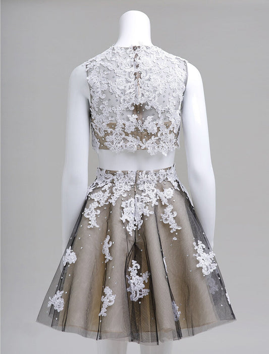 Two Piece Plus Size Dress Homecoming Short Mini Sleeveless Lace Over Tulle Beading