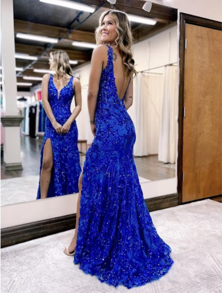 Trumpet Prom Dresses Sparkle Shine Dress Formal Sleeveless V Neck Sequined Backless with Sequin
