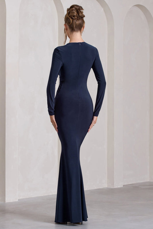 AerbaDress navy plunge-neck twisted split maxi dress Prom Dresses