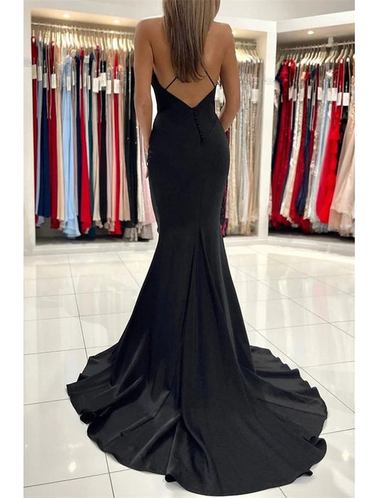 Mermaid / Trumpet Prom Dresses Open Back Dress Formal Prom Court Train Sleeveless V Neck Stretch Fabric with Pleats