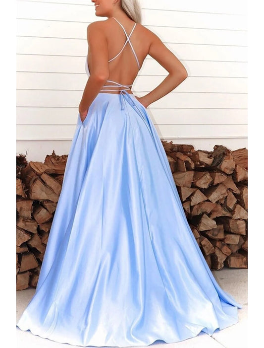 A-Line Prom Dresses Empire Dress Wedding Party Black Tie Gala Court Train Sleeveless V Neck Charmeuse Backless