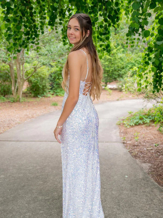 AerbaDress Strapless Slit Sequin Fitted Prom Dresses With Slit Prom Dresses