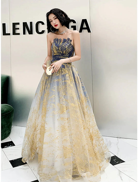 A-Line Sparkle Engagement Prom Dress Strapless Sleeveless Floor Length Sequined with