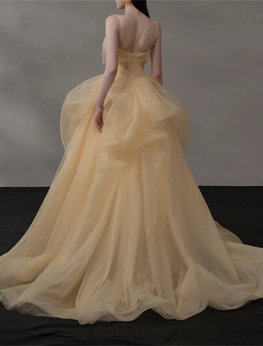 Ball Gown Evening Gown Glittering Dress Quinceanera Wedding Party Court Train Sleeveless Strapless Tulle with Glitter