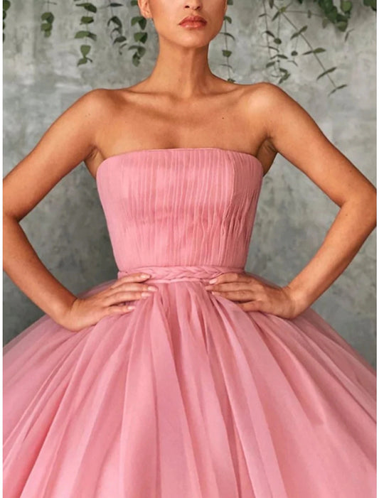 Ball Gown Prom Dresses Luxurious Dress Prom Formal Evening Floor Length Short Sleeve Strapless Tulle with Pleats Tiered