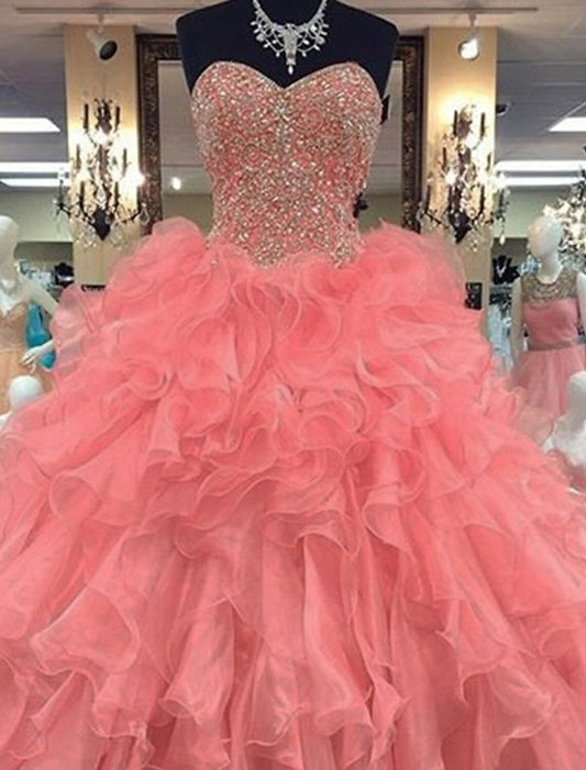 Ball Gown Quinceanera Dresses Sparkle & Shine Dress Wedding Prom Floor Length Sleeveless Strapless Organza with Sequin