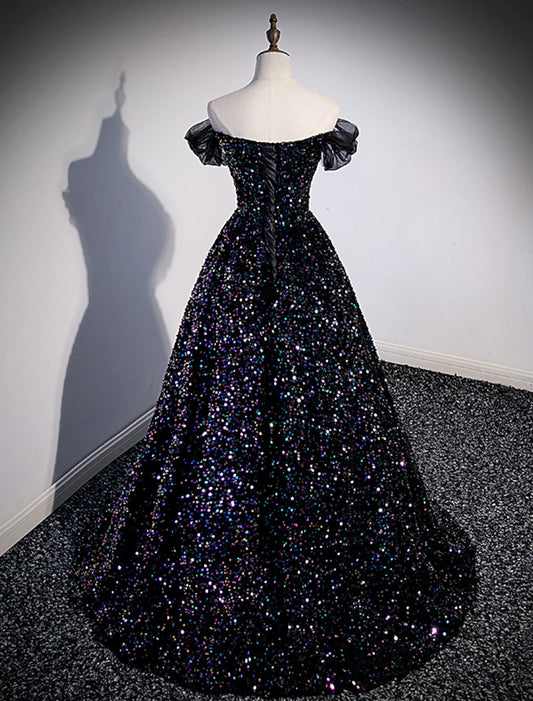 Ball Gown Prom Dresses Sparkle & Shine Dress Wedding Guest Birthday Court Train Sleeveless Off Shoulder Sequined with Pleats Sequin