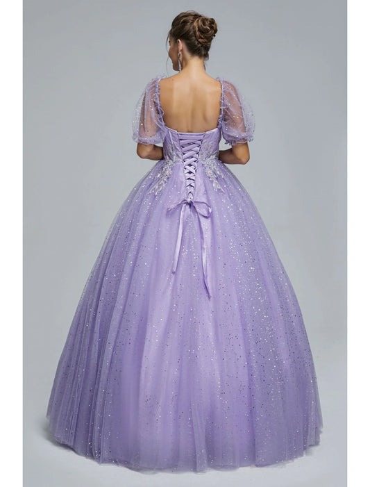 Ball Gown Prom Dresses Princess Dress Graduation Quinceanera Floor Length Short Sleeve Sweetheart Tulle with Sequin Appliques
