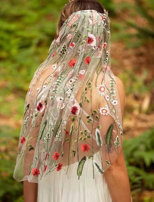 AerbaDress One-tier Flower Style / Sweet Wedding Veil with Embroidery Tulle
