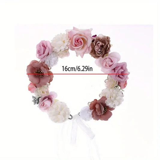 Aerba 1pc Fabric Rose Wreath Hair Band, Artificial Bridal Wreath Headdress for Wedding Prom Photography Party