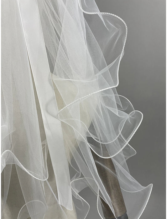 AerbaDress Two-tier Ribbon Wedding Veil Veils with 31.5 in (80cm) Tulle A-line, Ball Gown, Princess Trumpet / Mermaid