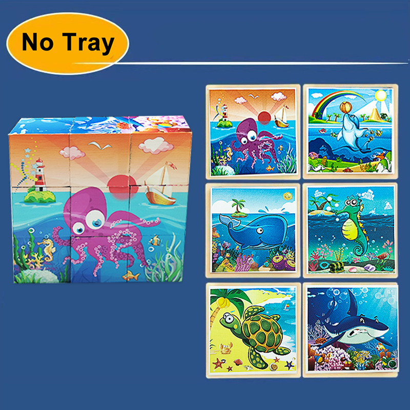 Aerba Children's Toys 3D cube Wooden puzzle children's nine pieces six-sided wooden block tray children's Montessori learning educational puzzle toys