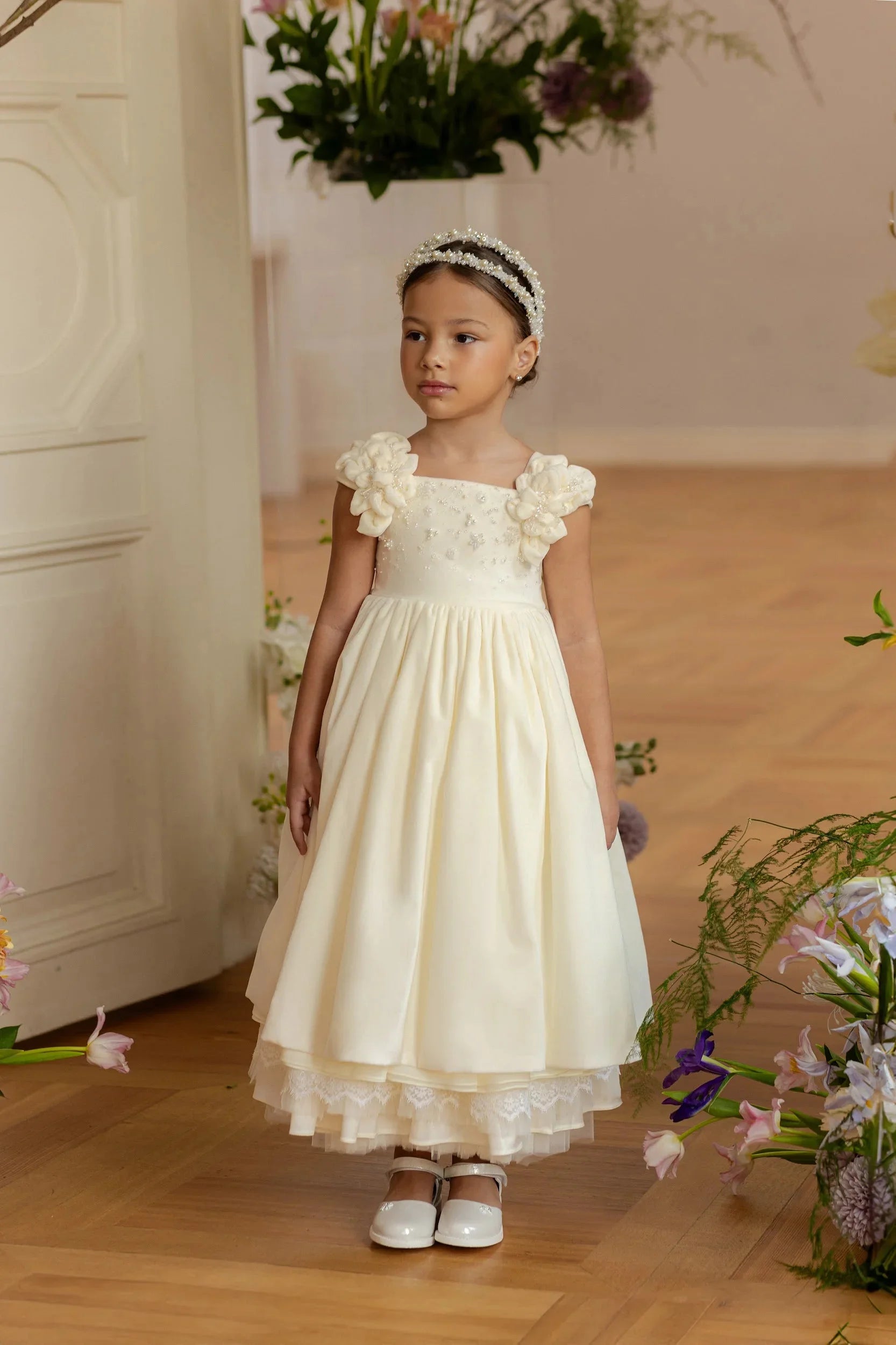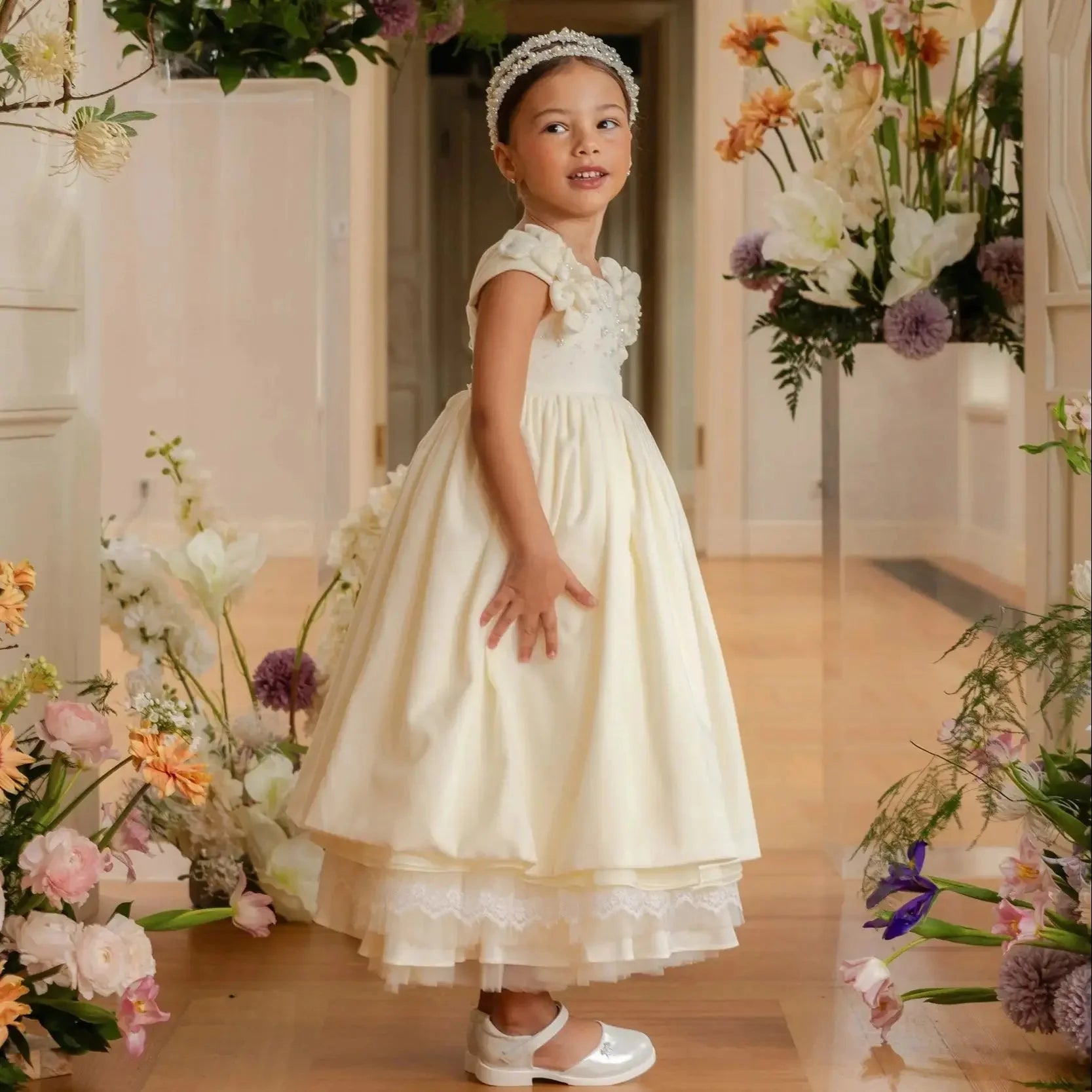 AERBA DRESS Wedding Flower Girl Dress 3D Floral Pearls Lace Little Girl Holy First Communion Party Banquet Gown Princess Dress