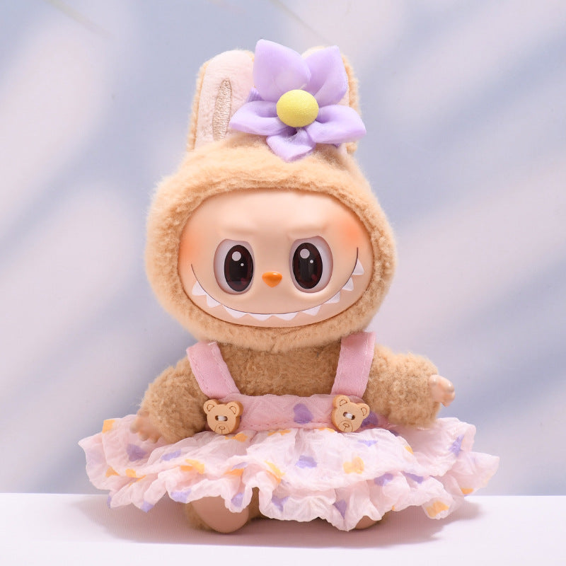 Handmade Labubu set can be paired with Labubu V1 Macaron and V2 seats and can be paired with a fluffy gauze skirt set and a lace up cloth for children's clothing (excluding dolls)