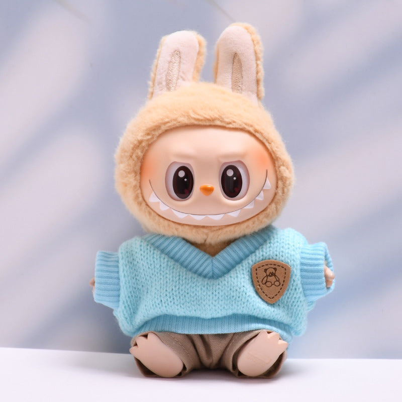 Handmade Labubu set can be paired with Labubu V1 Macaron and V2 seats blue knitted vest glasses hat set Labubu doll clothes (excluding dolls)