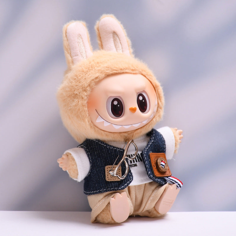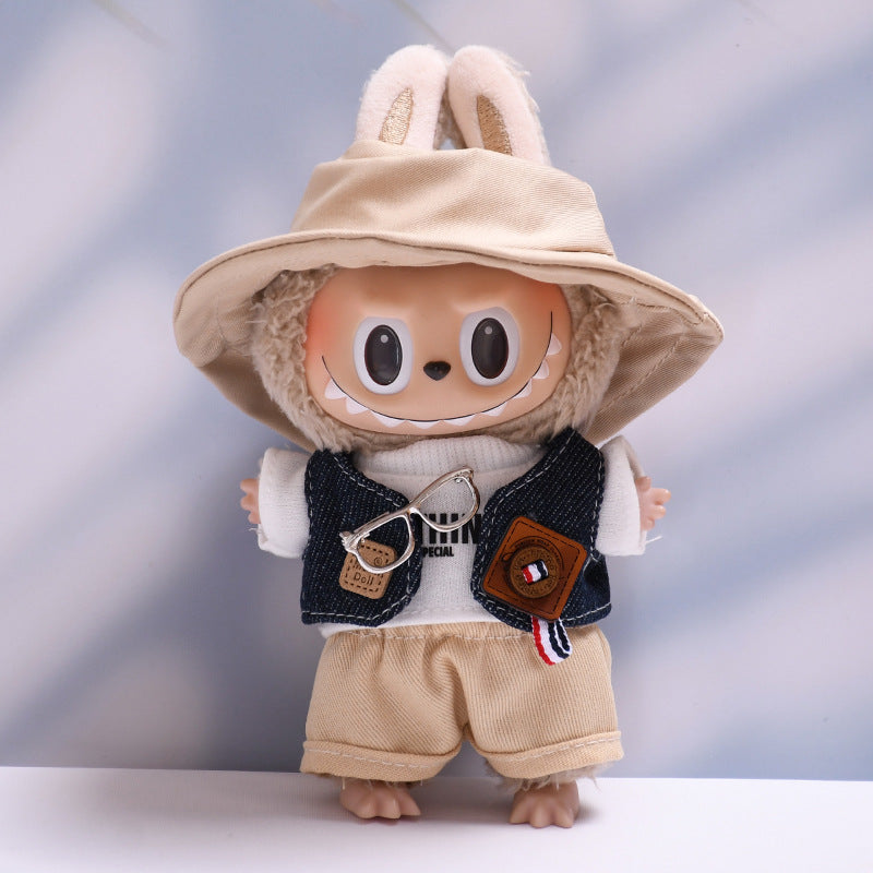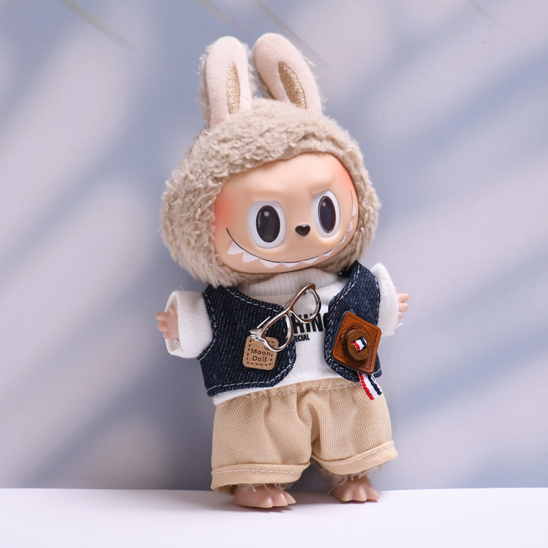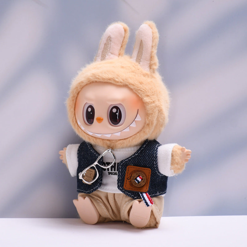 Handmade Labubu set can be paired with Labubu V1 Macaron and V2 seats denim vest glasses set Labubu doll clothing replacement (excluding dolls)