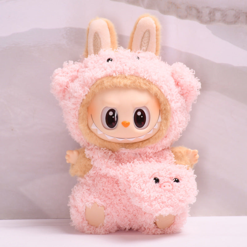 Handmade Labubu set can be paired with Labubu V1 Macaron and V2 seats pink pig three piece set Labubu doll clothing replacement (excluding dolls)