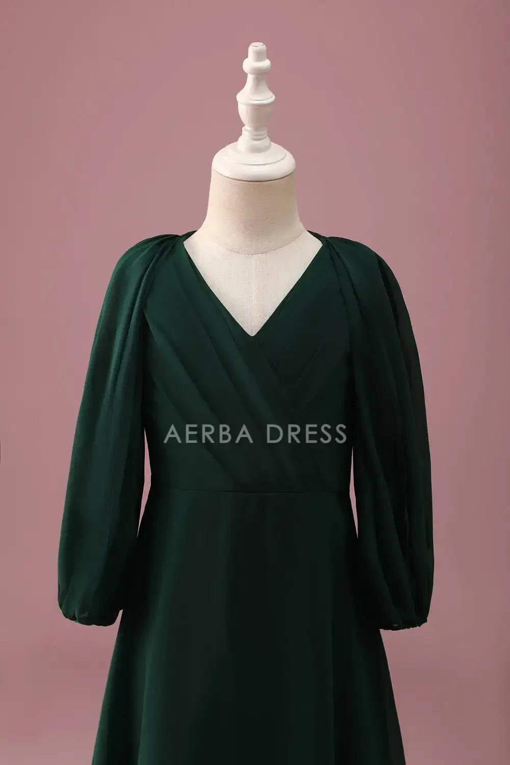 Junior Bridesmaid Dress A-Line V Neck Long Sleeves Pleated Elegant Long Girl Formal Dress