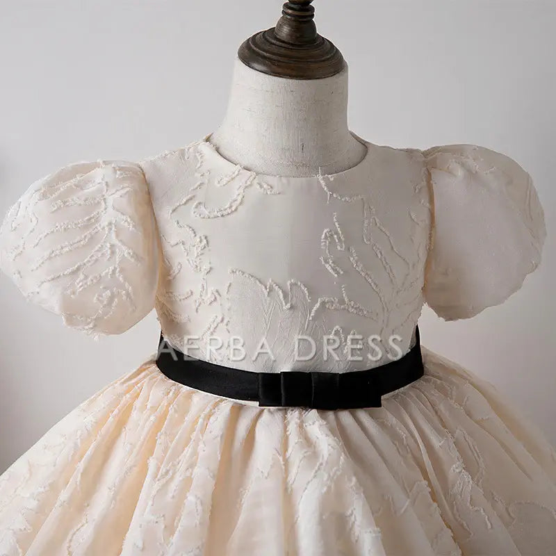Wedding Flower Girl Dress Fashion A Line Round Neck Puff Sleeve Girl Communion Formal Dress One-Year-Old Birthday Party Dress Cute Girl Princess Dress
